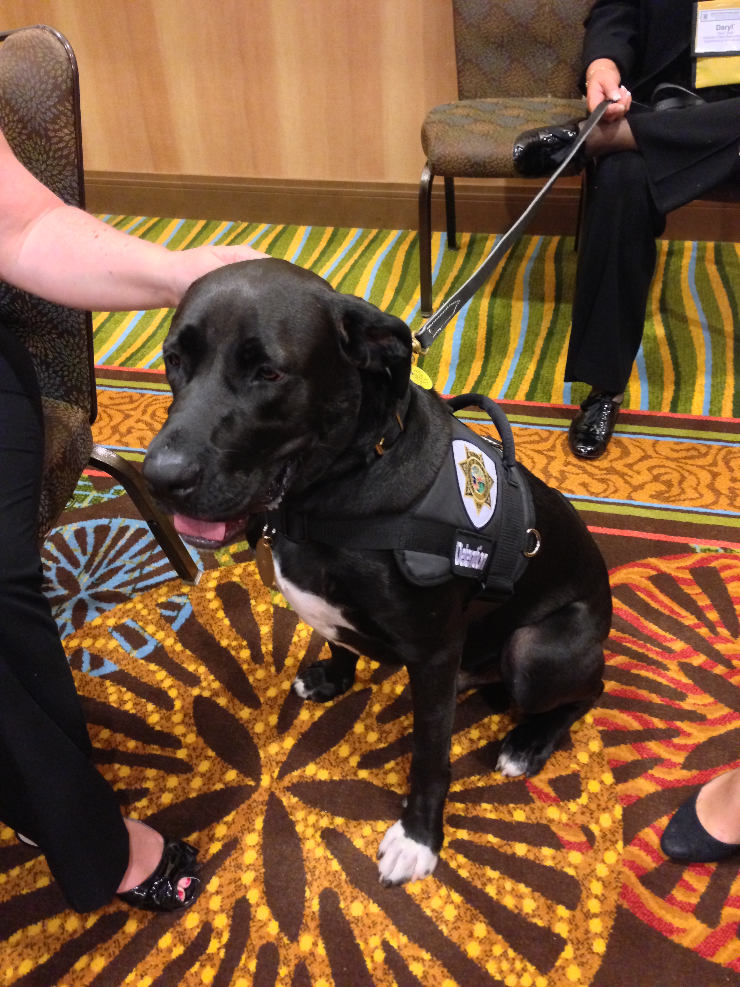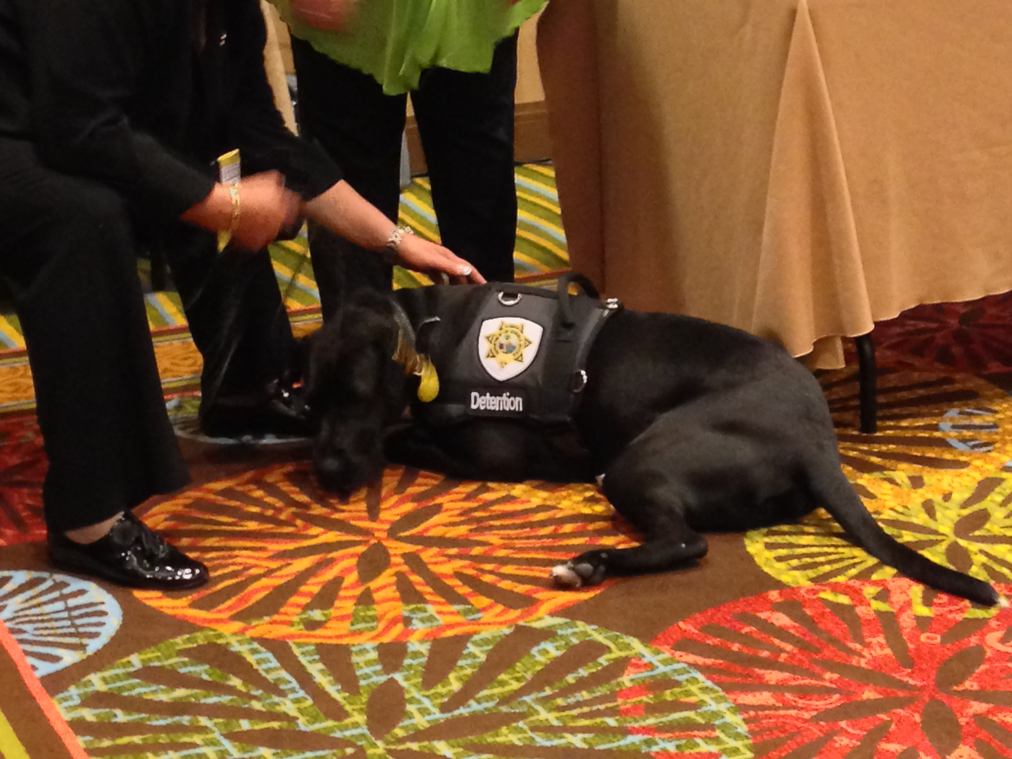 Justice is good at his job, too. In that room filled with professionals, I don’t think one missed getting licks by Justice. Yes, he licks! I know many therapy dogs are trained not to do that, but Justice is encouraged to give kisses.