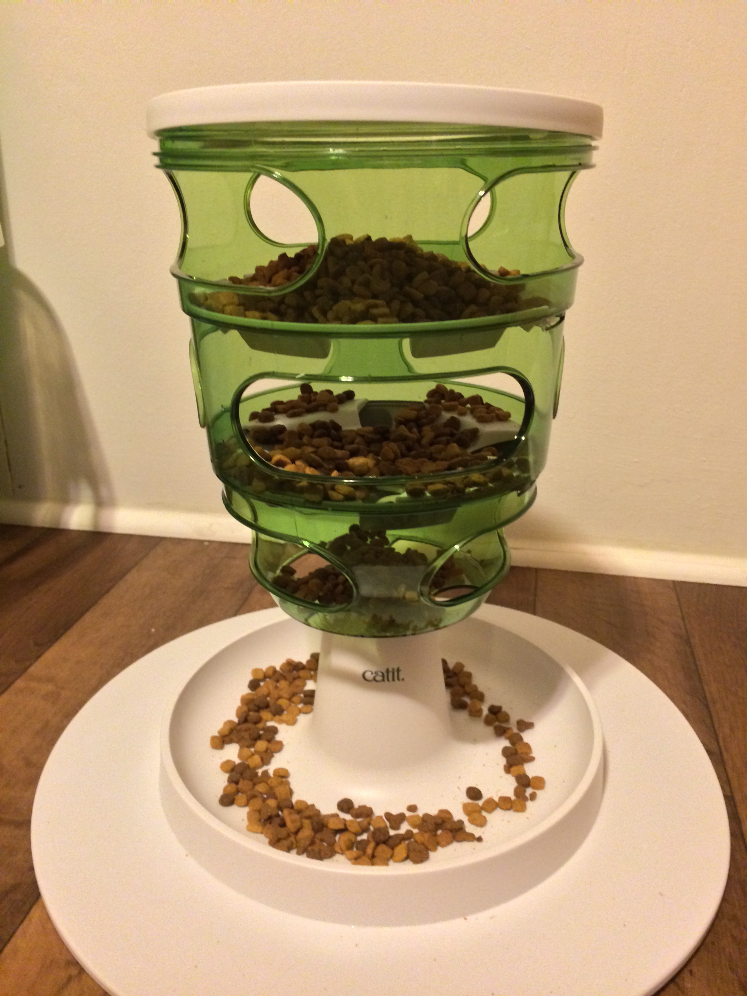 Posted by Stacey | November 25, 2017, 5:39 PMWell Jenn I have no ideas! I do know NONE of my cats liked eating off plastic so maybe the feeder is not a great idea in practice.
